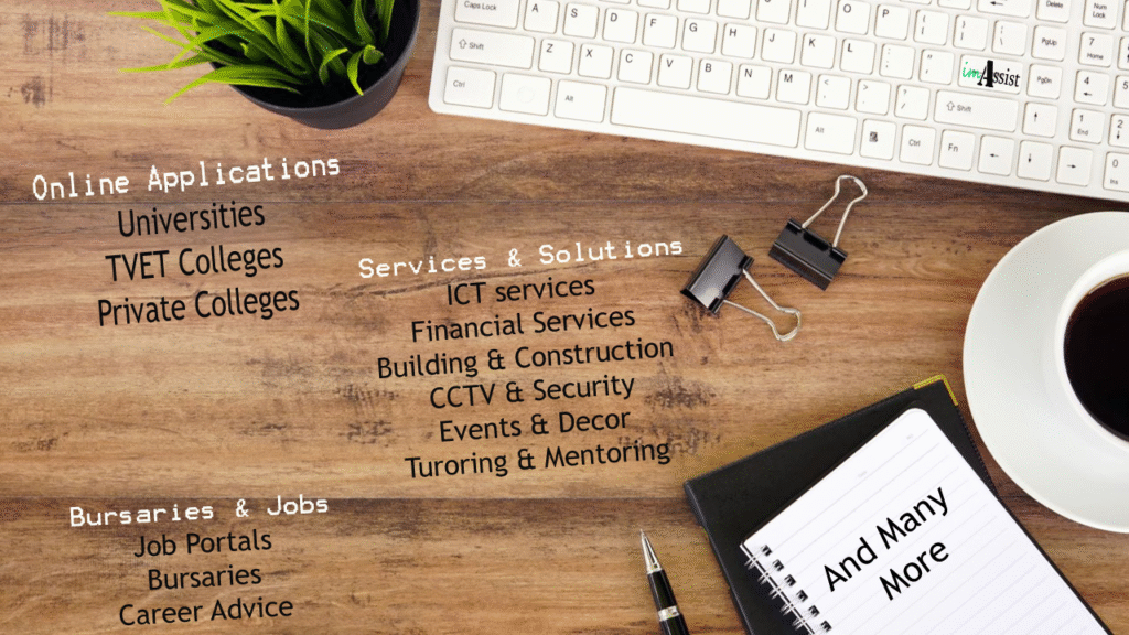 At imAssist, we help with online applications for Universities, TVET colleges, and Private colleges. Our support includes guidance with completing forms, uploading documents, and submitting applications. Please note: we only assist with applications, not registrations.